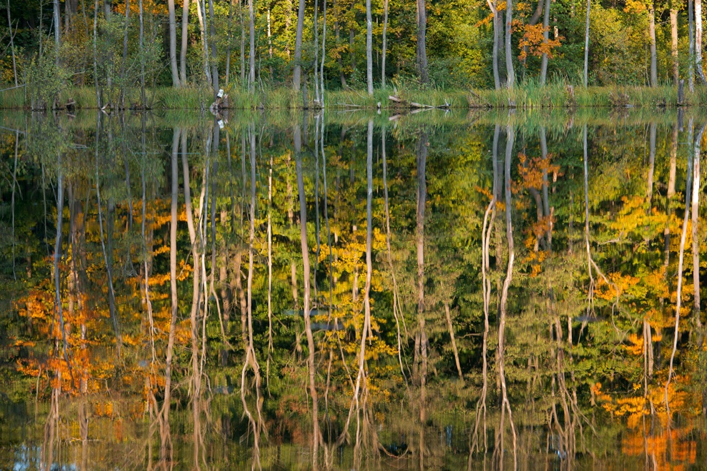 | Bóng cây phản chiếu trên mặt hồ Trepliner, gần Treplin, miền đông nước Đức.  |