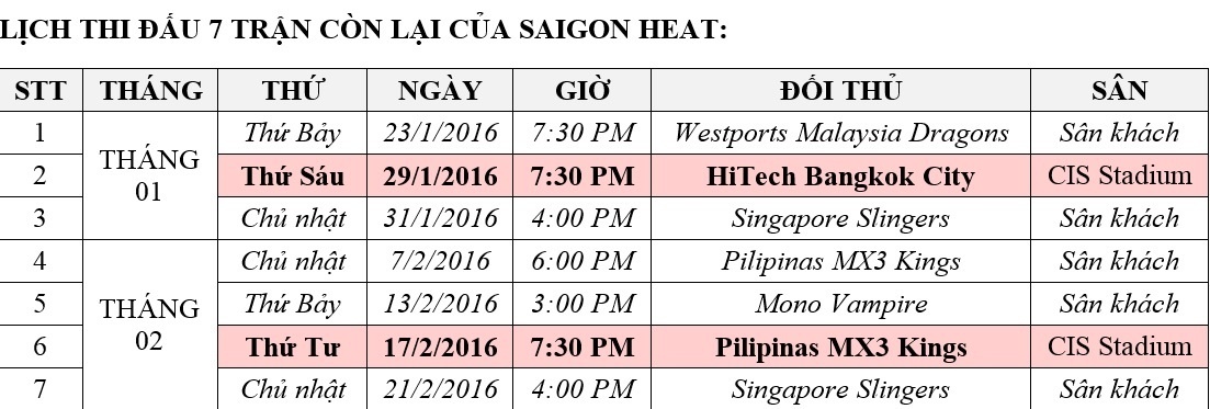 Các trận đấu trên sân nhà của Saigon Heat sẽ diễn ra tại Nhà thi đấu CIS, đường 23, phường Tân Phú, quận 7, TP HCM.