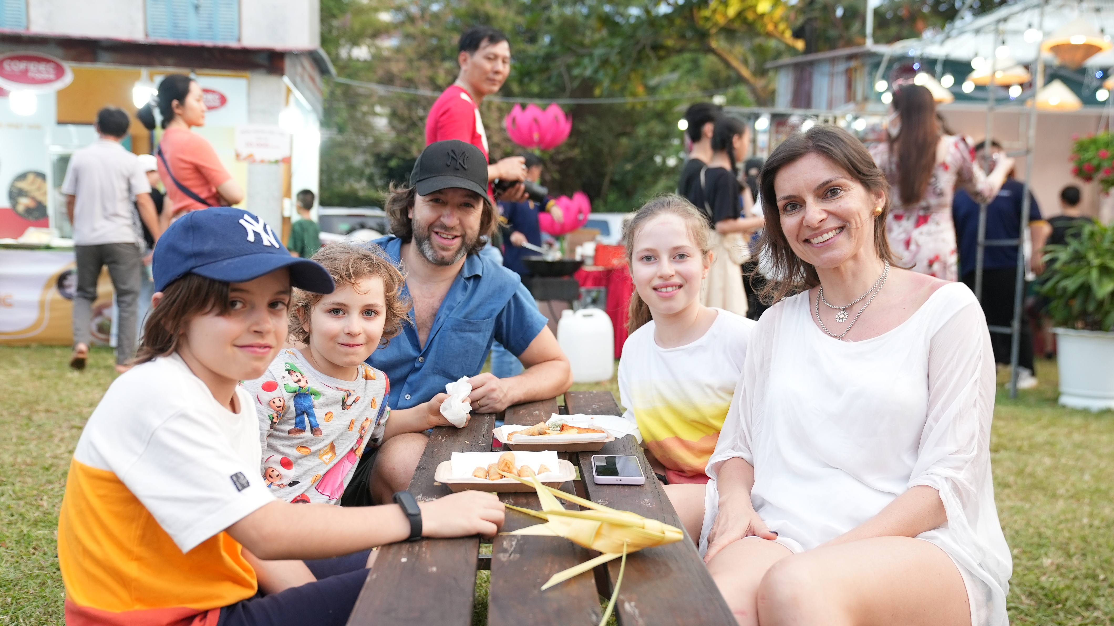 “Chúng tôi lập hội để đến đây từ chiều. Mọi thứ amazing - quá tuyệt vời từ món ăn truyền thống đến âm nhạc. Chúng tôi cũng rất ấn tượng với khu vực làng nghề, nơi các nghệ nhân làm bánh nướng thủ công”, chị Êstelle Neuman hào hứng.