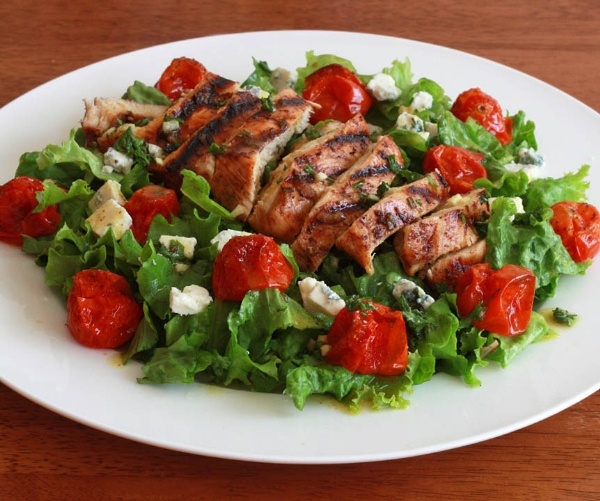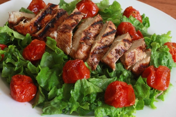 | Khi chế biến thành món Salad, thịt gà sẽ không còn nhạt và khó ăn nữa. Gà nướng thơm lại ăn kèm salad chua chua rất đưa cơm. |