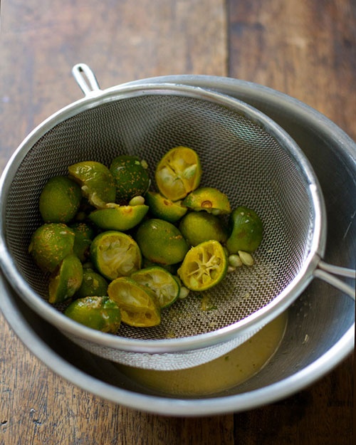 | Băm tỏi và ớt. Hòa tỏi và ớt trong một bát trộn nhỏ với nước tương, giấm, đường, nước cốt chanh, dầu, và nước mắm. Đánh tan đều. Cho thêm bơ đậu phộng và nước và đánh tan lại một lần nữa cho đến khi được hỗn hợp nước sốt mịn sánh. |