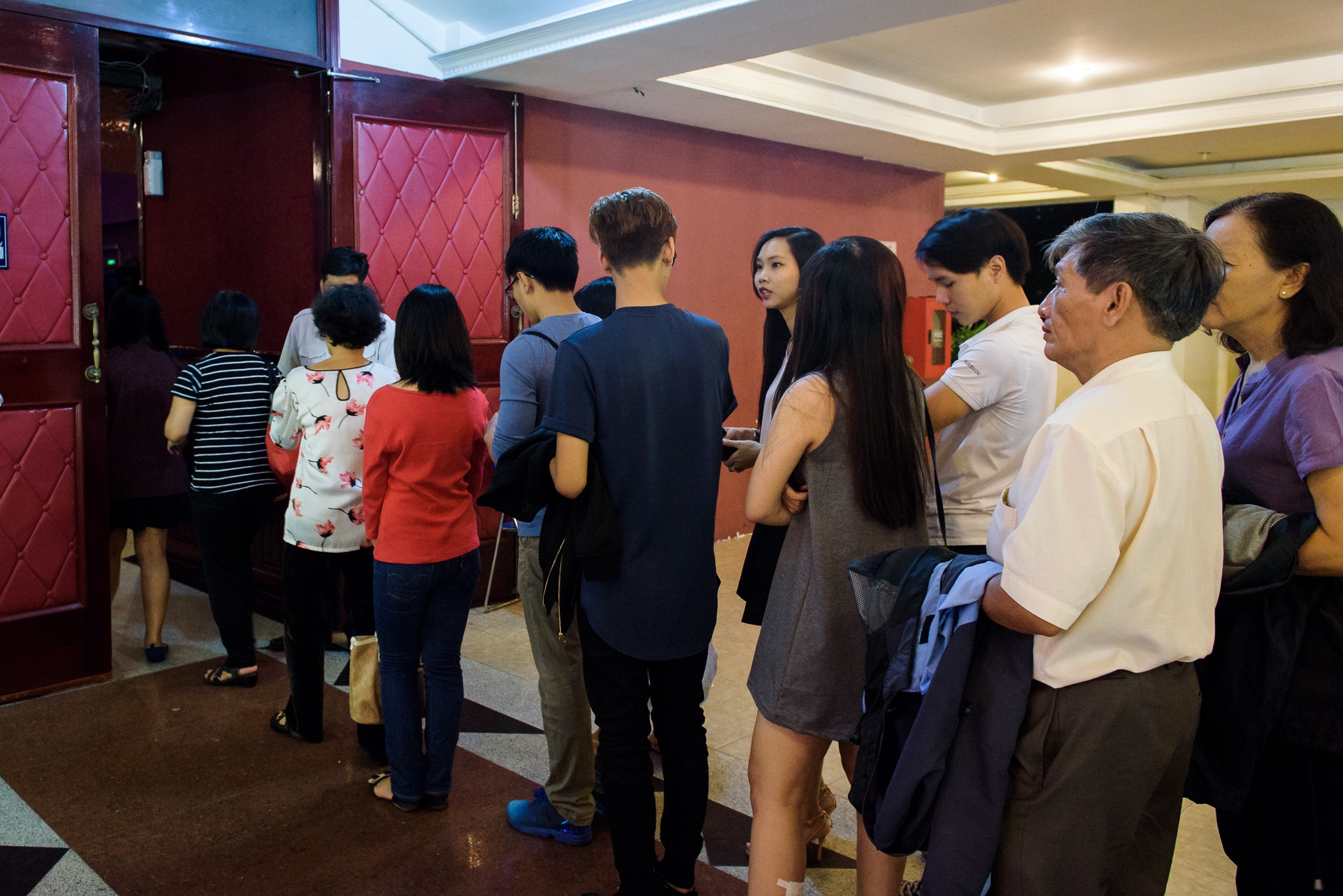 | Mọi người xếp hàng theo thứ tự trước khi vào sân khấu. |