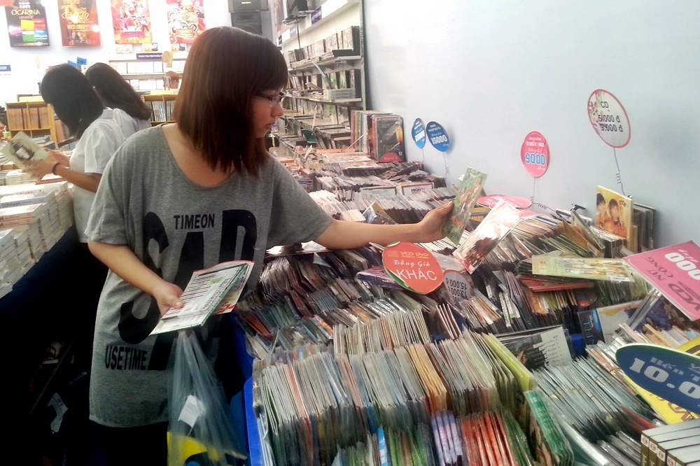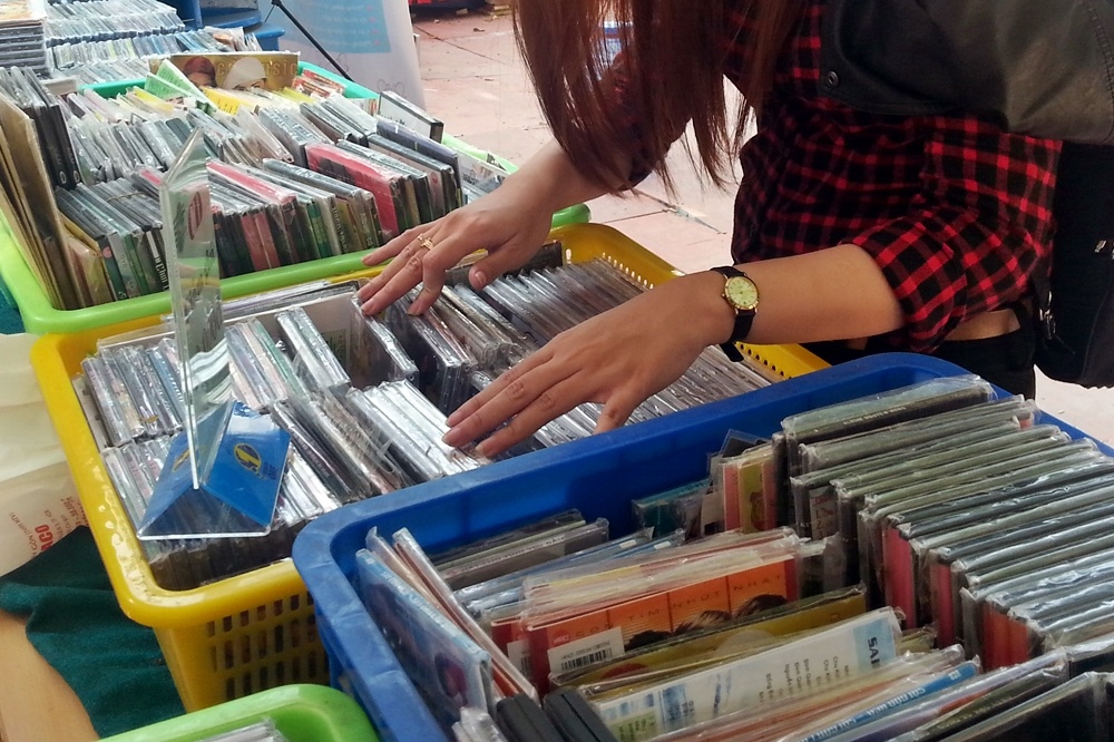 | Đầu tuần qua (24/3), Hội sách TP.HCM lần 8 đã được khai trương tại công viên Lê Văn Tám. Ngoài những gian hàng sách phong phú và đa dạng, mọi thể loại, thì các khu vực bán CD/DVD ca nhạc cũng nhận được nhiều sự quan tâm của khách tham quan. Nếu như những album mới trưng bày cẩn thận trên kệ chỉ được giảm giá không đáng kể, khoảng 20% thì góc đĩa đặt có phần hơi lộn xộn trong các khay to lại có mức giá không thể nào rẻ hơn được nữa, và đặc biệt là "nếu chịu khó kiên nhẫn tìm kiếm, bạn có thể tìm ra những CD gần như đã mất hút trên thị trường", một vị khách trẻ chia sẻ "bí quyết". |