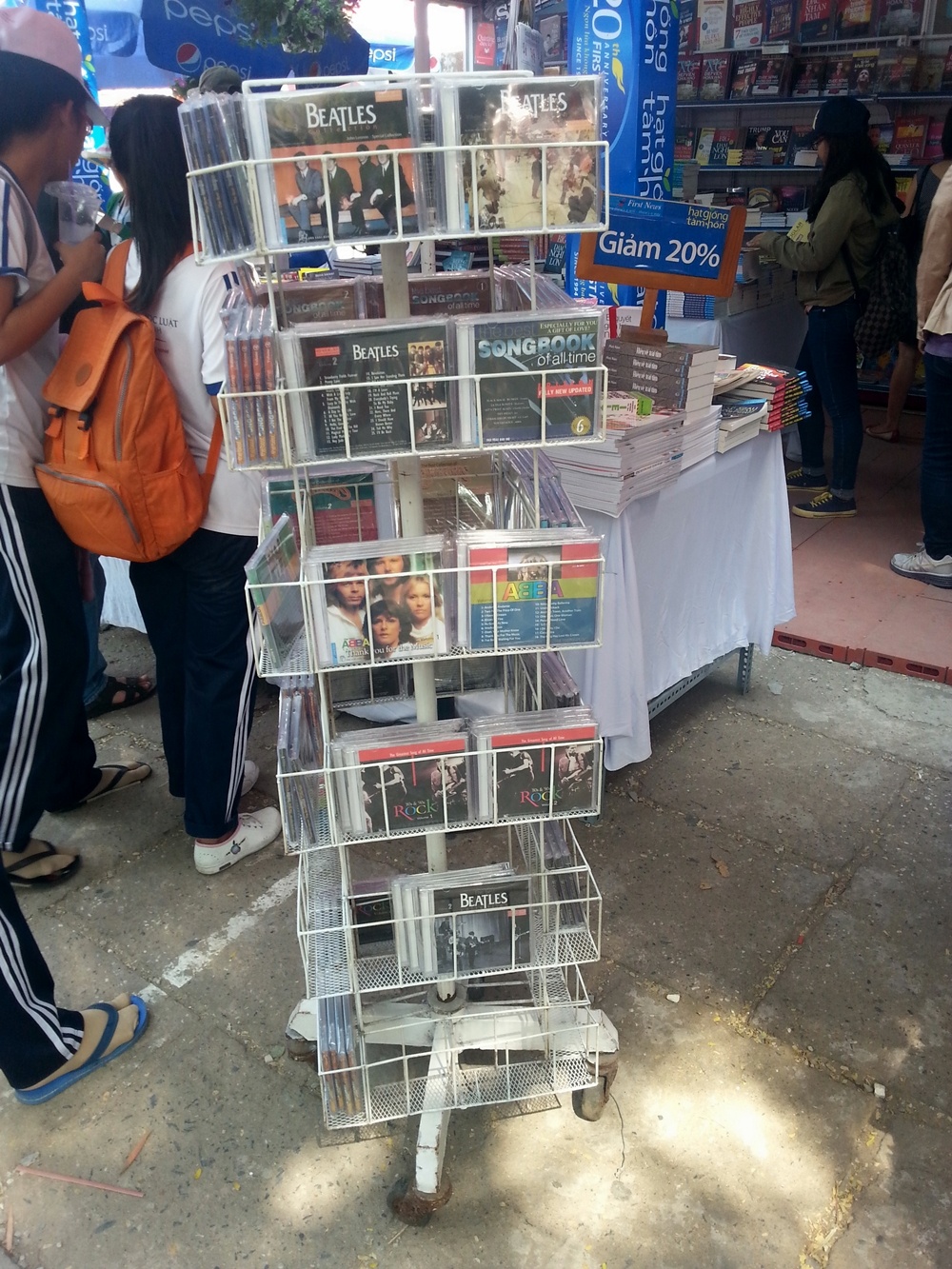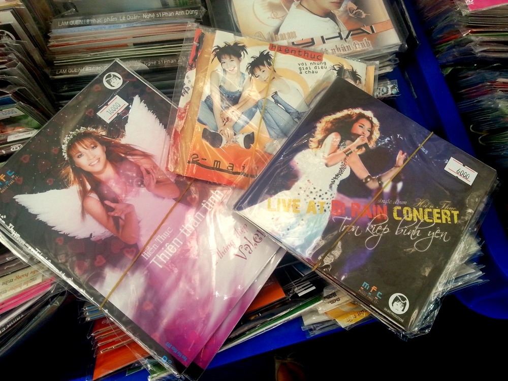 Đa số là album của các nhóm nhạc Beatles, Abba và các tuyển tập ca khúc bất hủ. Bên cạnh đó là các CD, VCD/DVD hài, ca nhạc thiếu nhi... Thậm chí những cuốn băng cassette cũng được bày bán tại một gian hàng dù thời điểm này gần như rất ít người còn sử dụng radio để nghe nhạc.