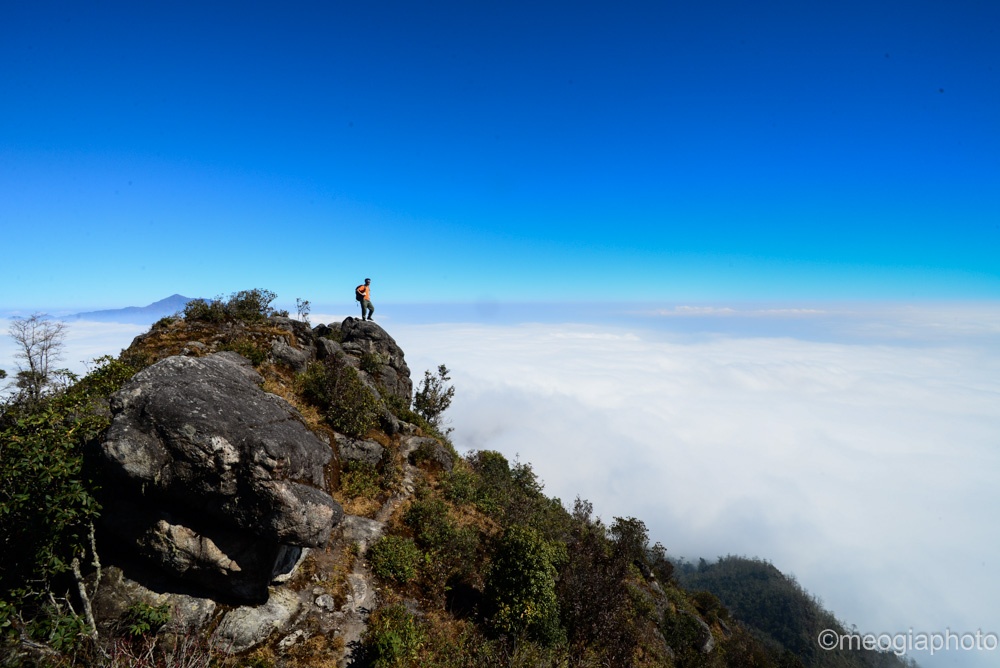 | Đứng trên mỏm núi cao, ngắm toàn cảnh biển mây trong nắng sớm là một trải nghiệm tuyệt vời, không thể nào quên. |