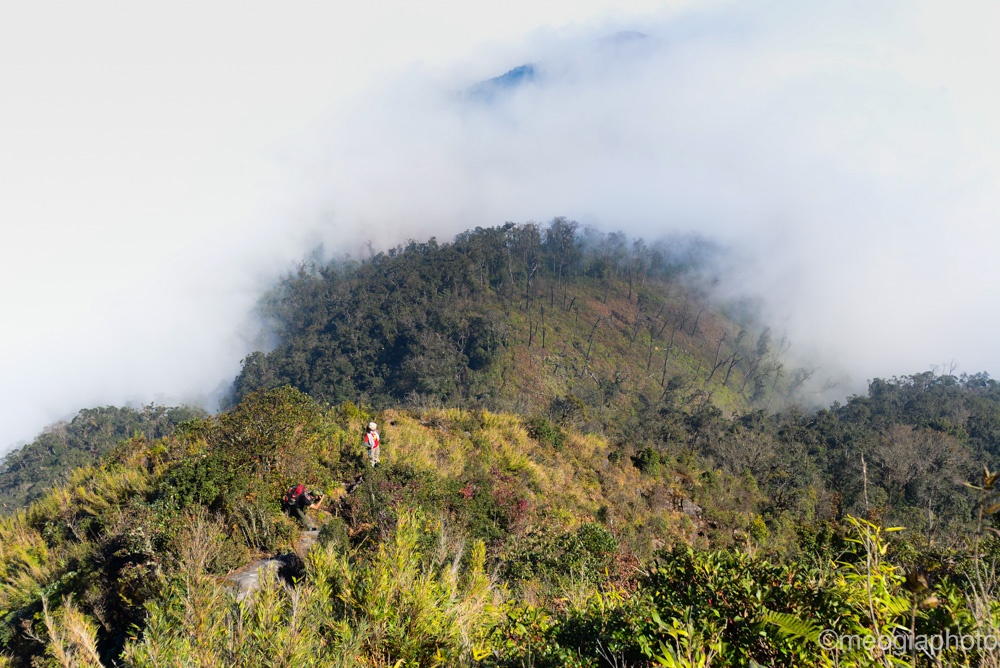 | Hôm sau, 4h chúng tôi đã chuẩn bị đồ đạc để tiếp tục lên đường. Trong đêm tối, chúng tôi nối đuôi nhau băng qua những con dốc và nhiều đoạn đường hiểm trở trong rừng. Có những nơi vách đá dựng đứng, cả đội lần mò rồi bám sát nhau, cẩn thận leo lên từng bước. |