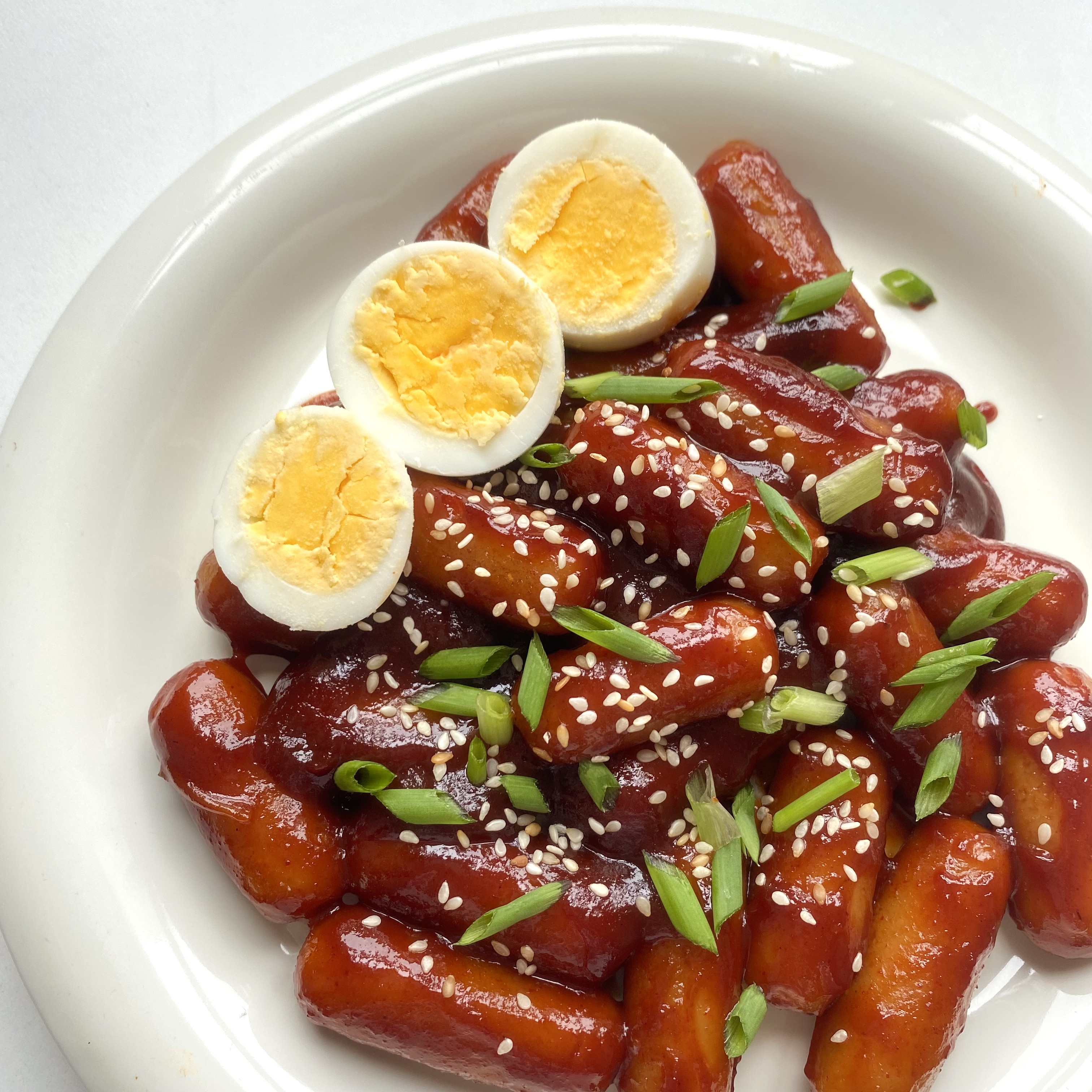 - Bước 4: Trộn các nguyên liệu cho phần sốt lại với nhau và đem đun trên chảo chống dính ở lửa vừa. Đổ bánh gạo vào hỗn hợp sốt và tiếp tục đun cho tới khi sốt sệt lại là đạt.