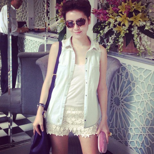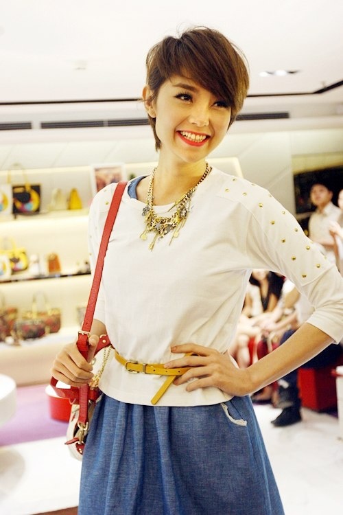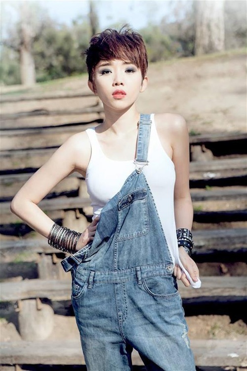 Cô cũng rất chịu khó tạo kiểu để tăng vẻ đẹp cho mái tóc ngắn.