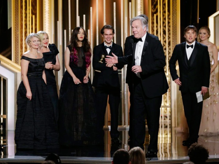 Đoàn phim Transparent: Một trong những khoảnh khắc xúc động nhất tại lễ trao giải thưởng Quả cầu vàng 2015 là chiến thắng dành cho loạt phim truyền hình hài hước về đề tài chuyển giới, Transparent. Tác giả Jill Soloway nói: “Tôi muốn cảm ơn toàn bộ cộng đồng chuyển giới đã ủng hộ bộ phim. Qua đây, tôi cũng muốn cảm ơn cha tôi, người từng tạo nên một bước đột phá khi nói ra sự thật về bản thân ông, qua đó giúp tôi luôn luôn nói lên sự thật”. Bản thân cha của Jill Soloway cũng là một người chuyển giới. |