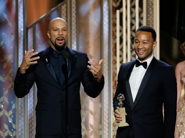 Common và John Legend: Bộ đôi là tác giả của ca khúc Glory trong Selma, tác phẩm điện ảnh kể lại cuộc đấu tranh đòi quyền bình đẳng cho người Mỹ gốc Phi tại Hoa Kỳ trong thập niên 1960 do mục sư Martin Luther King Jr. đứng đầu. Vốn là một người da màu, Common xúc động chia sẻ: “Kể từ ngày đầu tiên đặt chân tới trường quay của Selma, tôi đã cảm thấy nó còn hơn cả một bộ phim. Selma thực sự đã đánh thức nhân tính bên trong con người tôi”. |