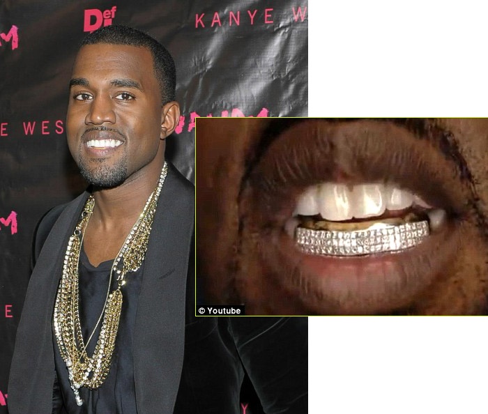 | Hàm răng trắng sáng lấp lánh kim cương của Kayne West. |