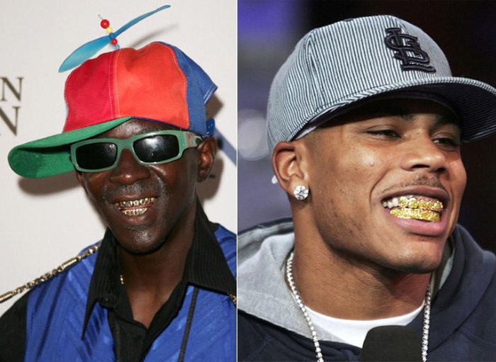| Flavor Flav (trái) và Nelly với bộ răng gây chú ý. |
