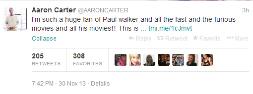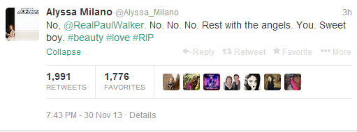 Lúc này trên Twitter các ngôi sao Hollywood cũng đang chia sẻ những lời thương tiếc đối với Paul Walker.