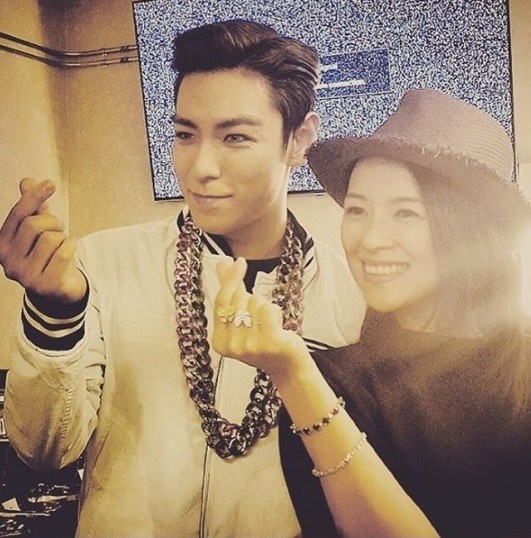| T.O.P chụp ảnh ở hậu trường tour diễn ở Mỹ cùng Chương Tử Di. |