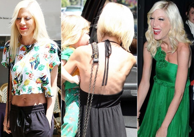 Tori Spelling thực tế chỉ nặng hơn 40 kg. Cô đã giảm tới 20 ký sau khi sinh con khiến cho thân hình chỉ còn da bọc xương.