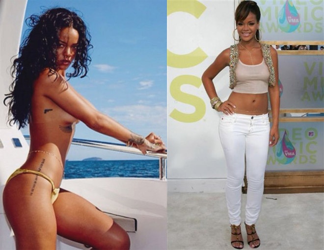 | Dường như Rihanna rất thích kiểu dây đeo ngang eo vừa làm trang sức, vừa giúp giữ dáng này. |