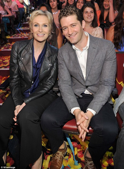 | Trước đó nữ diễn viên Jane Lynch cũng chia sẻ: “Chúng tôi vượt qua nỗi đau này bằng những cách khác nhau”. Dưới hàng ghế, cô ngồi cùng nam diễn viên Matthew Morrison , 2 người là đối thủ của nhau trong Glee. |