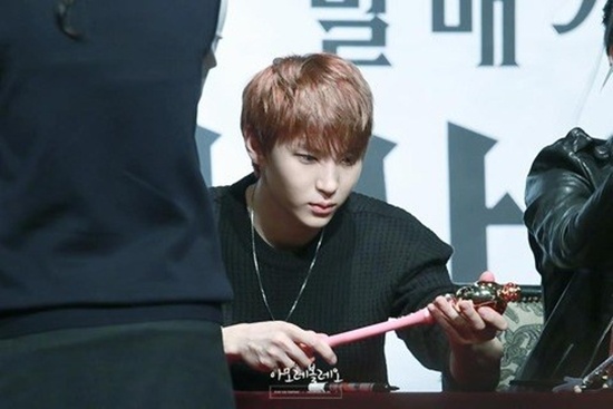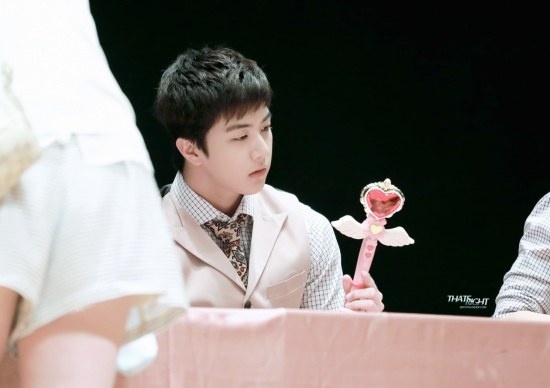 | Khán giả hâm mộ luôn đau đầu về vấn đề chọn quà cho thần tượng của mình để đảm bảo 2 yếu tố lạ và độc. Chính vì vậy các sao Hàn sau khi nhận được món quà từ tay người hâm mộ nhiều lần đã không khỏi ngạc nhiên bất ngờ: Có vẻ như Thunder rất thích bộ phim Thủy thủ mặt trăng nên các fan đã tặng cho anh một chiếc gậy trong series hoạt hình đó. |