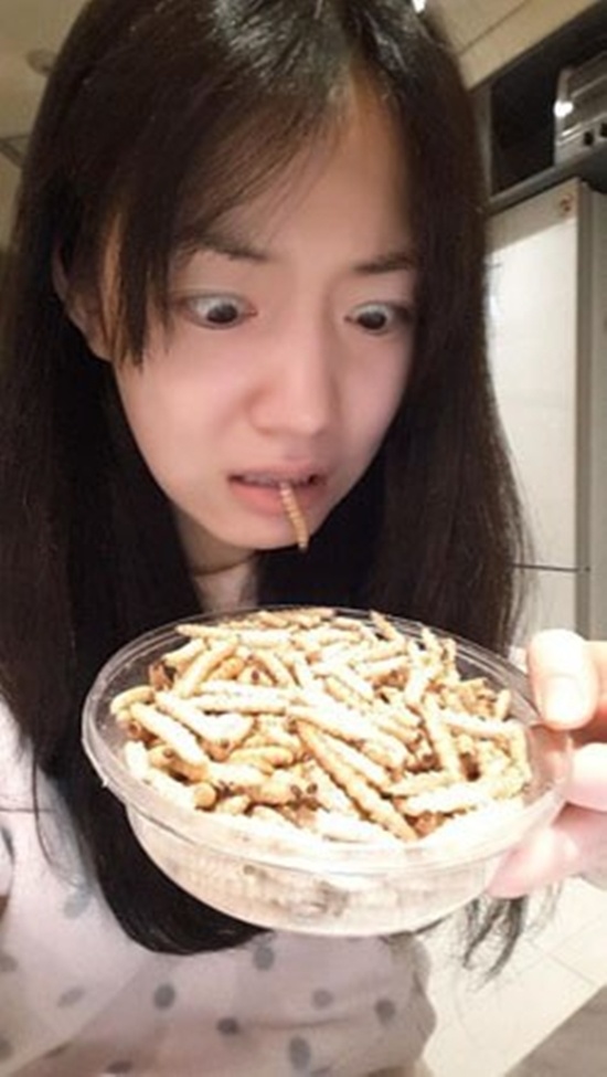 | Hwayoung hết hồn khi mở quà tặng ra là một hộp nhộng chiên, đây là quà từ fan Thái Lan. |