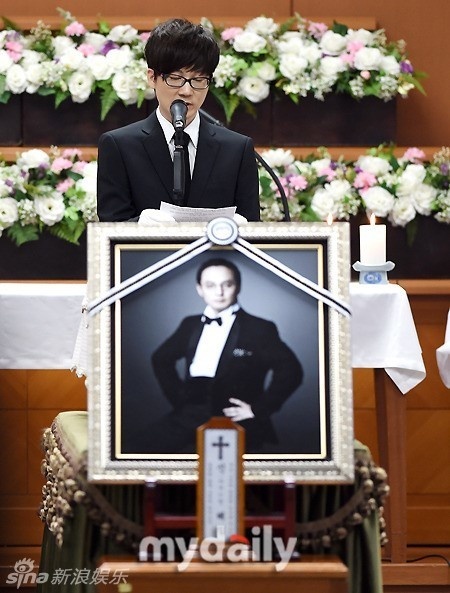 | Seo Taiji phát biểu trong lễ tiễn đưa Shin Hae Chul. |