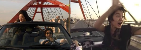 Nhân vật trong phim Hàn bất chấp nguy hiểm khi để bạn đồng hành đứng dậy trên ghế xe và hướng ra ngoài hò hò hét.
