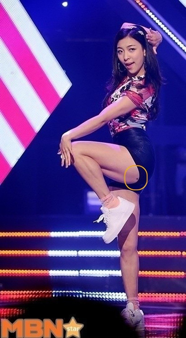 Trang Ent cho biết thông thường sau khi đi hút mỡ, cơ thể sẽ để lộ những nốt đen ở vùng đùi trên và thường là ngay dưới vùng hông. Do các nhóm nhạc Hàn hay mặc đồ gợi cảm ngắn cũn cỡn nên có thể lộ “dấu tích” này. Những tấm ảnh chụp từ sân khấu của Taeyeon, Jessica, Sojin hay Luna và Sulli đều lộ những “nốt lạ” tương tự. Khá nhiều phỏng đoán cho rằng đây là bằng chứng cho việc các sao từng đi hút mỡ.