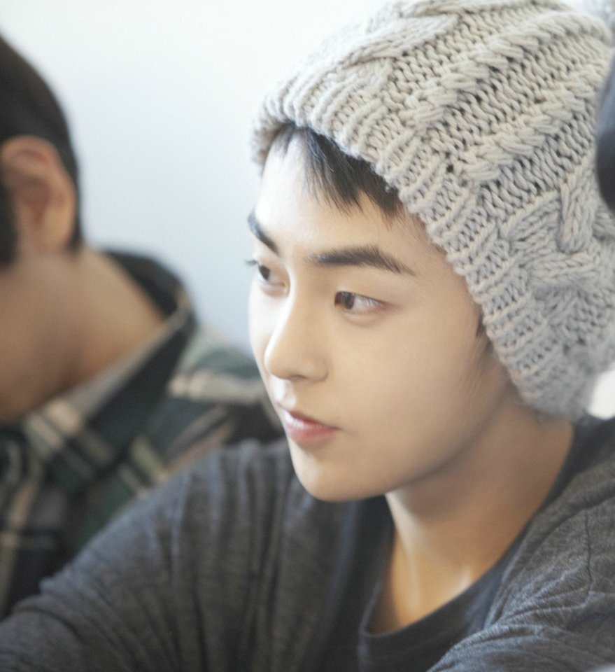 | Xiumin đơn giản, nhưng vẫn ấm áp khi mặc áo "ton sur ton" với mũ len màu xám.