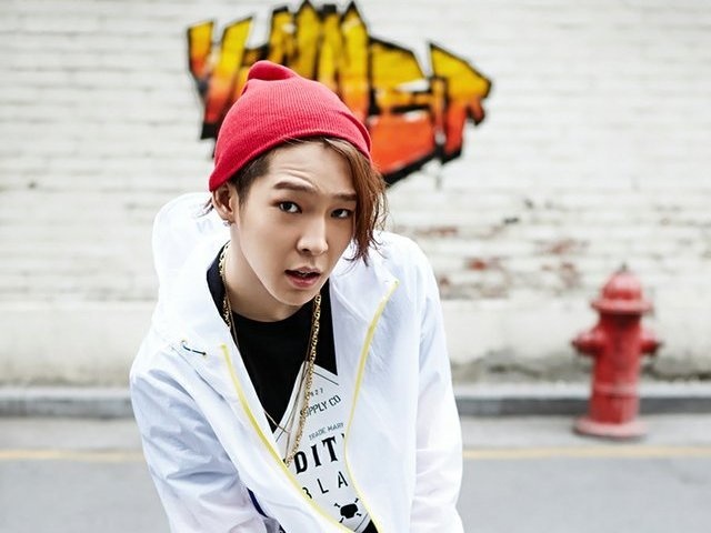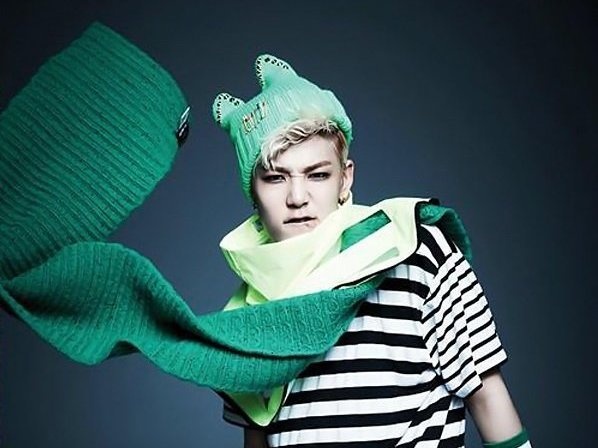 | Zelo, B.A.P ấn tượng với mũ beanie màu xanh cách điệu tai mèo ấn tượng kết hợp hoàn hảo cùng chiếc khăn đồng màu.