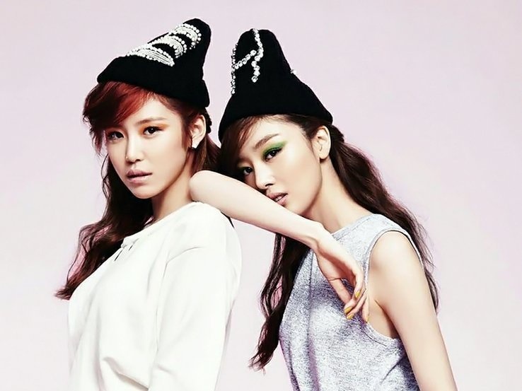 | Bộ đôi nhóm SECRET, Hyosung và Sunhwa mang một chút nổi loạn khi sử dụng mũ beanie màu đen đính đá.