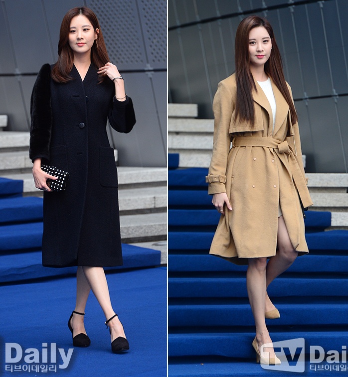 | Seo Hyun quý phái và lịch lãm khi xuất hiện tại tuần lễ thời trang xuân - hè Seoul (SFW). Em út SNSD chọn cách phối khá an toàn khi luôn đi giày đồng màu với áo choàng. |