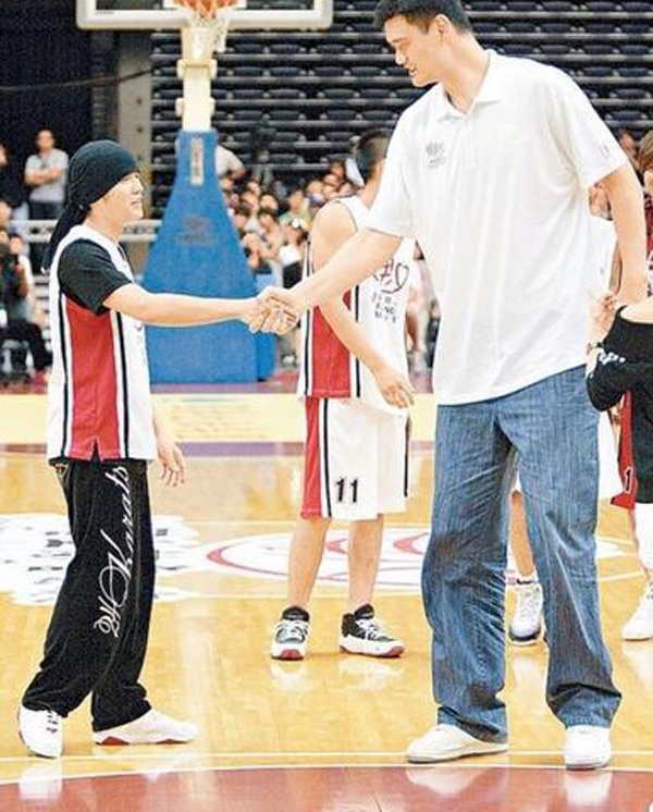 | "Người khổng lồ" Diêu Minh bắt tay với "người tí hon" Châu Kiệt Luân. |