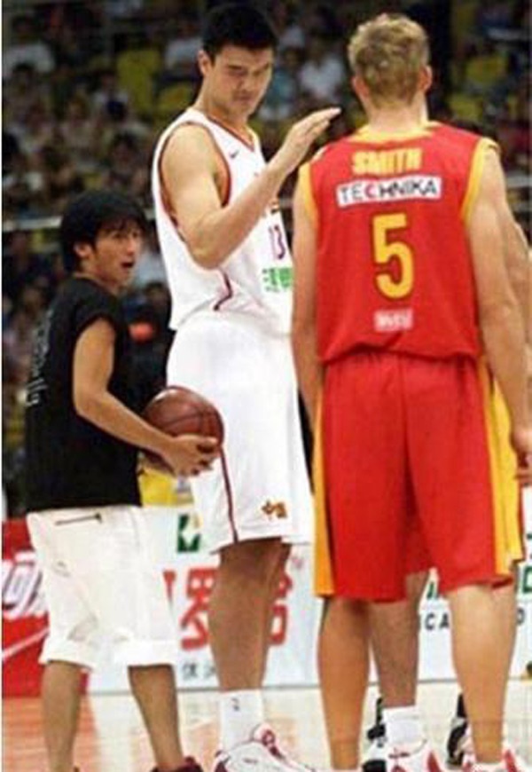 Dù là siêu sao Thành Long, Lý Liên Kiệt hay các mỹ nhân Chương Tử Di, Triệu Vy, Phạm Băng Băng... cũng đều nhỏ bé một cách ngỡ ngàng khi đứng bên cạnh danh thủ bóng rổ Diêu Minh.