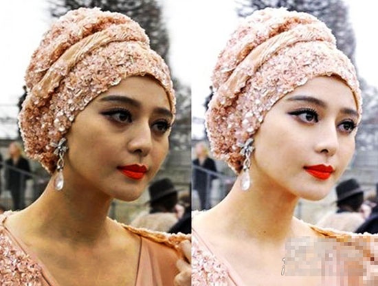 | Làn da của Phạm Băng Băng đã được chỉnh tươi sáng, rạng rỡ. |