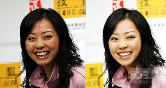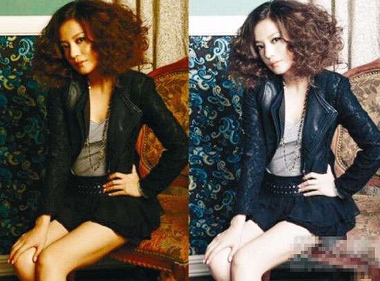 | Mặt thật và mặt photoshop của Châu Tấn khác một trời một vực. Cô nhìn trẻ ra cả chục tuổi nhờ công nghệ photoshop. |