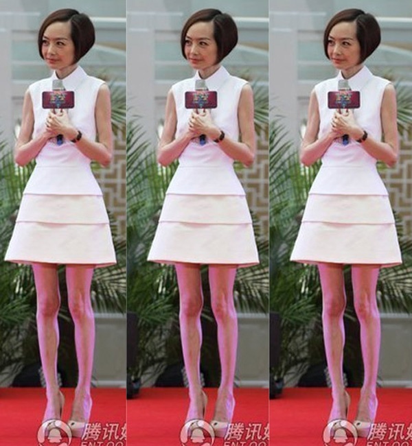 | Đôi chân gầy bé là điểm xấu trên cơ thể của Trương Bá Chi. |