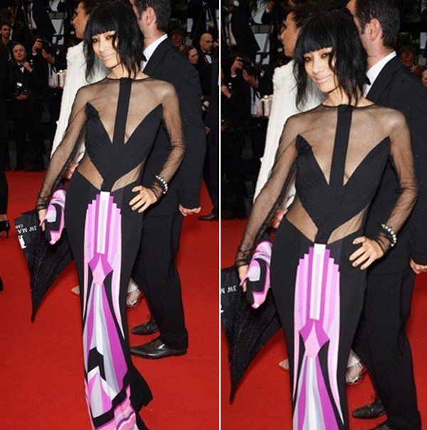 | Maggie Q muốn khoe vẻ đẹp gợi cảm nhưng xem ra người đối diện chỉ chú ý tới phần xương nhô ra từ cơ thể cô. |