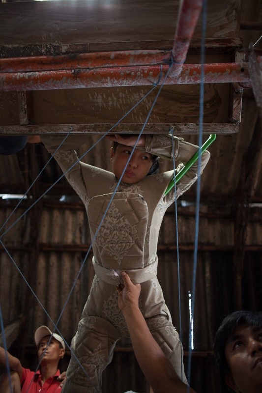 Trong quá trình bấm máy, Thanh Mỹ có những cảnh trượt patin trên tường, nhào lộn trốn khỏi kẻ thù, hay thậm chí là bị treo ngược trong lò mổ lợn. Ngay ngày đầu bấm máy, cô bé bị trượt chân và đập thẳng mặt vào máng lợn, nhưng vẫn phải nén đau để không gây ảnh hưởng tới cả đoàn.