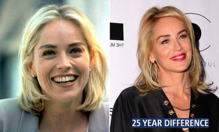 | Sharon Stone sau 25 năm vẫn gây ấn tượng với gương mặt đẹp và nụ cười trẻ trung. |