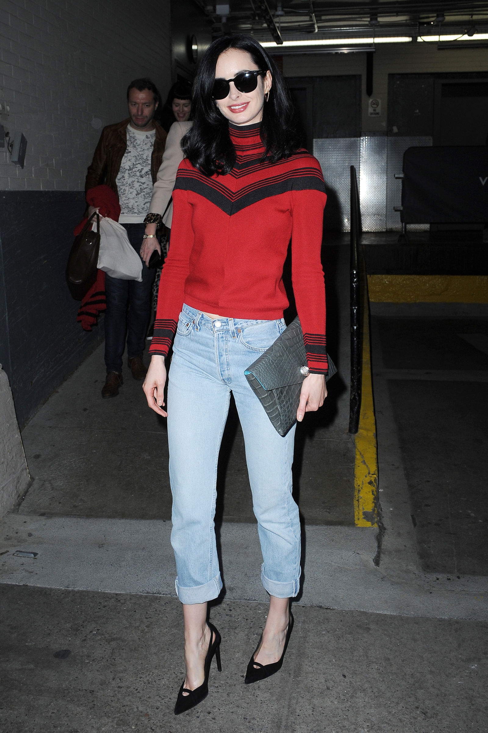 Krysten Ritter gợi ý cách lựa chọn jeans xắn gấu trẻ trung với tông màu xanh nhạt. |