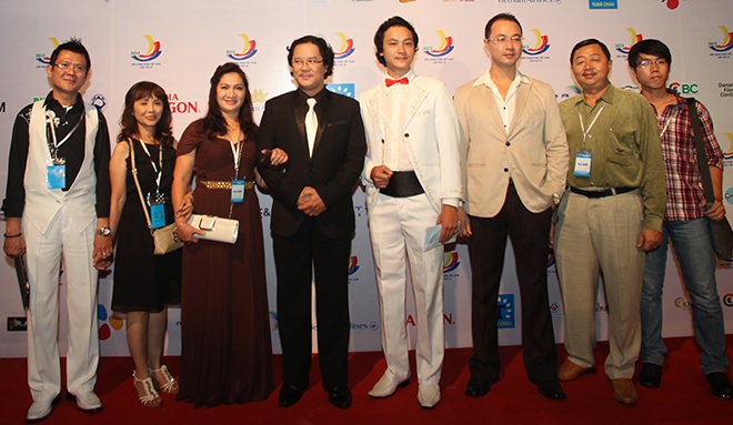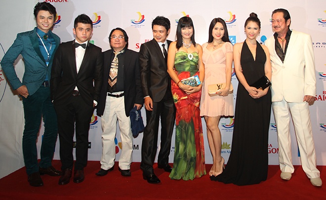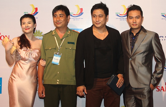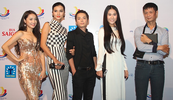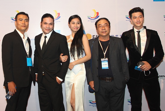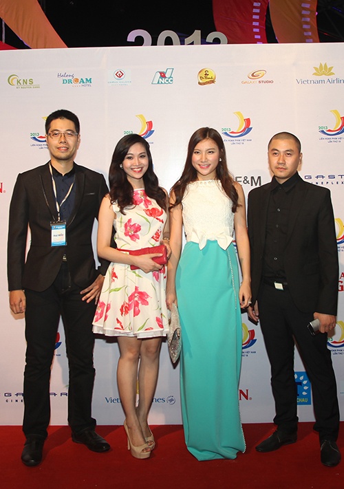 Đêm khai mạc cũng vắng nhiều diễn viên so với các kỳ liên hoan trước. Hot boy Huỳnh Anh (ngoài cùng bên phải) ăn mặc lịch lãm lên thảm đỏ.