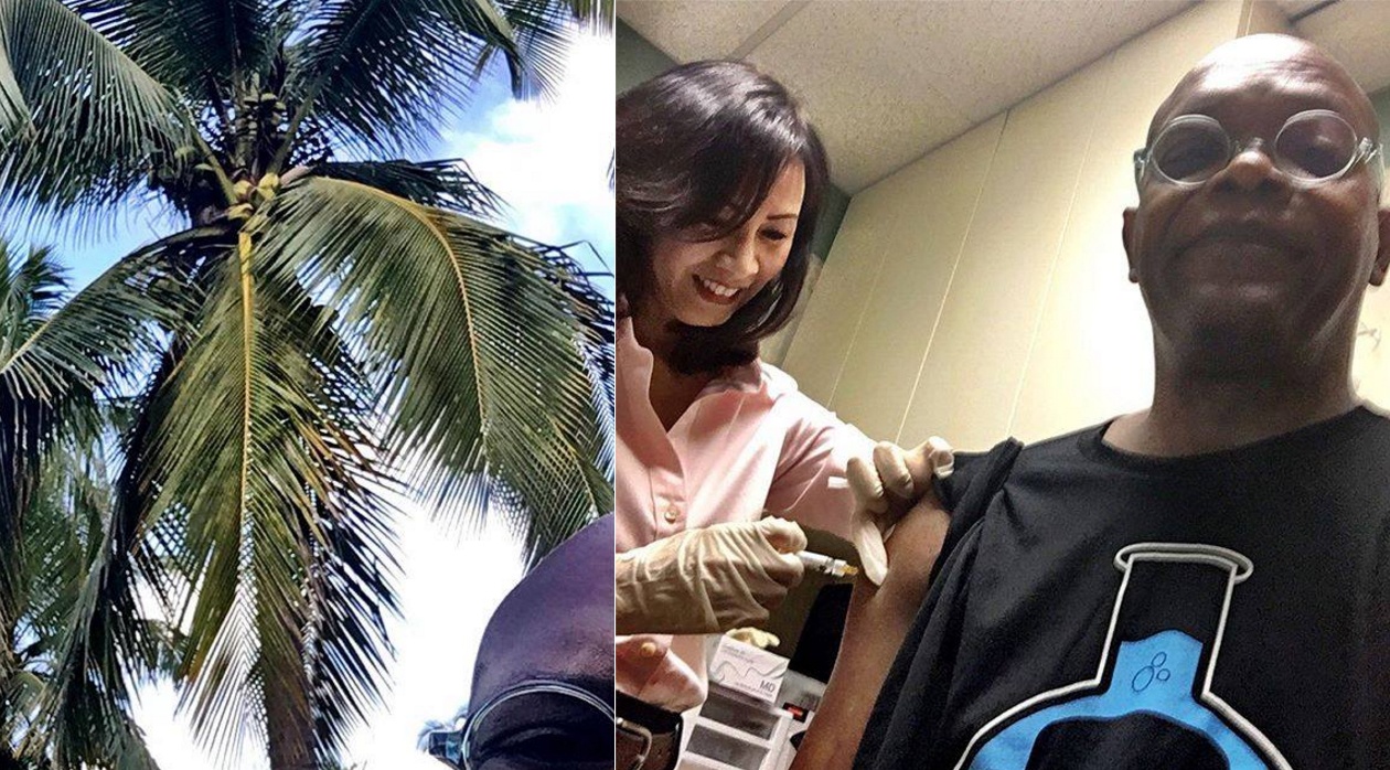 Sáng sớm ngày 12/11, Samuel L. Jackson bất ngờ đăng lên Facebook cá nhân tấm ảnh đang tiêm cùng dòng dòng chữ "Getting my Viet Nam injections started!".
