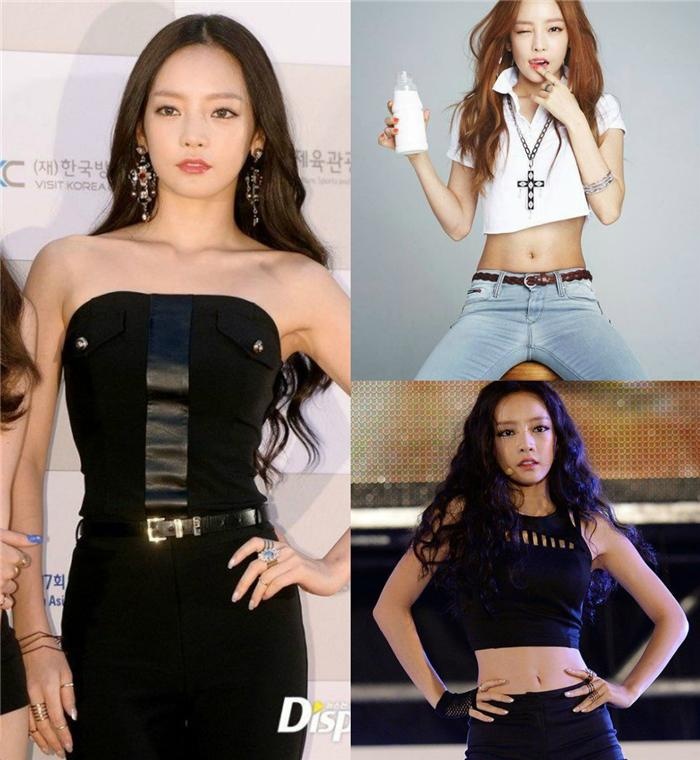 Vòng eo nhỏ nhất: Với số đo 50.8 cm, Goo Hara (Kara) là thần tượng nữ sở hữu vòng eo nhỏ nhất Kpop. Cô luôn gây chú ý khi diện đầm bó sát hay áo ngắn, thậm chí ngay cả khi ngồi, Goo Hara cũng không hề lộ mỡ bụng.