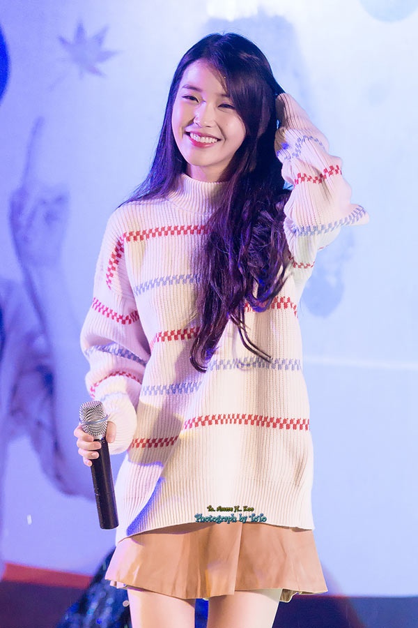 | IU thu hút mọi ánh nhìn với chiếc áo len oversize ấm áp, được mix kiêu kỳ cùng chân váy ngắn điệu đà. |