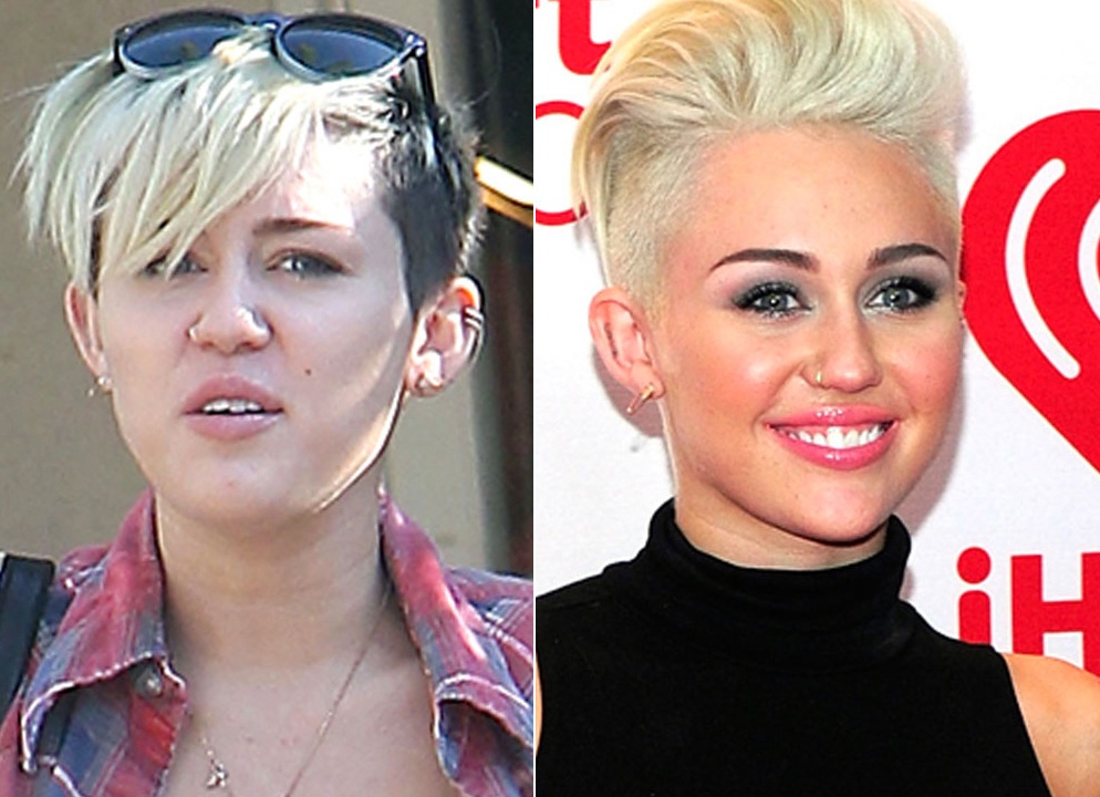 | Miley Cyrus nhìn giống đàn ông hơn khi không trang điểm. |