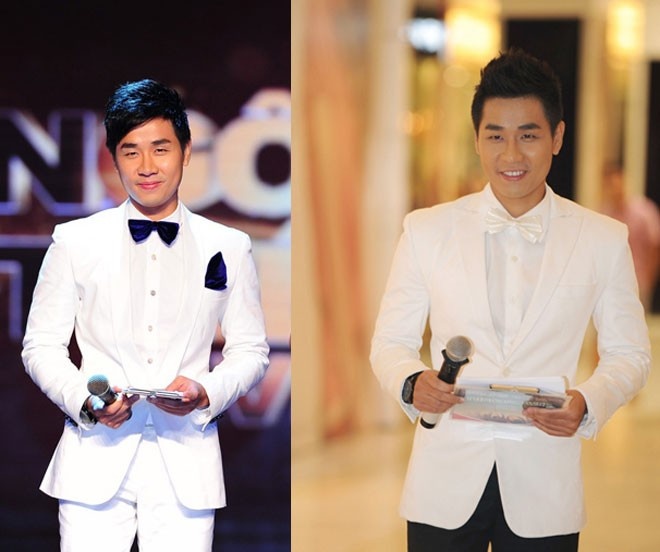 Chuyên gia Nam Trung và Nguyên Vũ đều chuộng màu son đỏ hồng. Cả hai cũng không quên kẻ lông mày, tạo đường sống mũi... kỹ lưỡng trong những lần xuất hiện.
