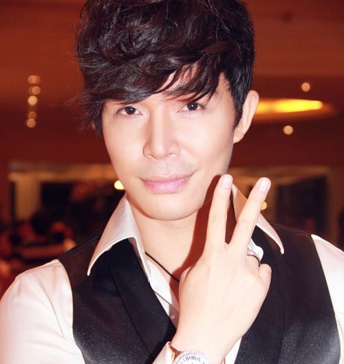 | Tùng Dương môi bóng nhẫy đi dự tiệc. |