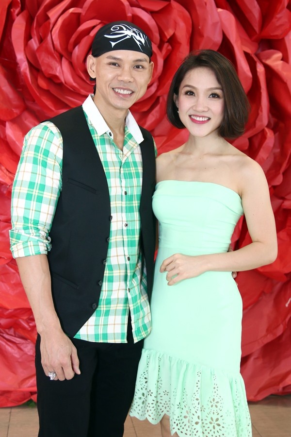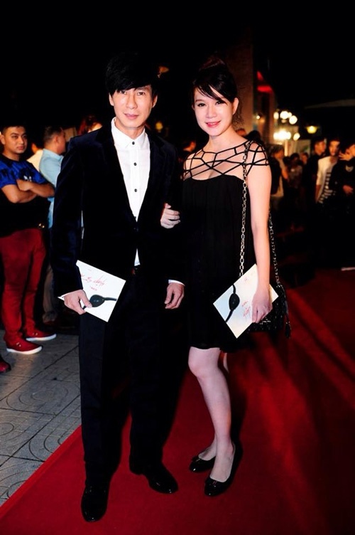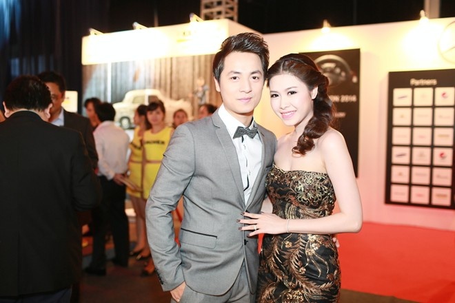 | Tại một sự kiện diễn ra ở TP.HCM, bà mẹ hai con chọn trang phục tối màu, đồng bộ cùng nam ca sĩ Trọn đời bên em trên thảm đỏ. |