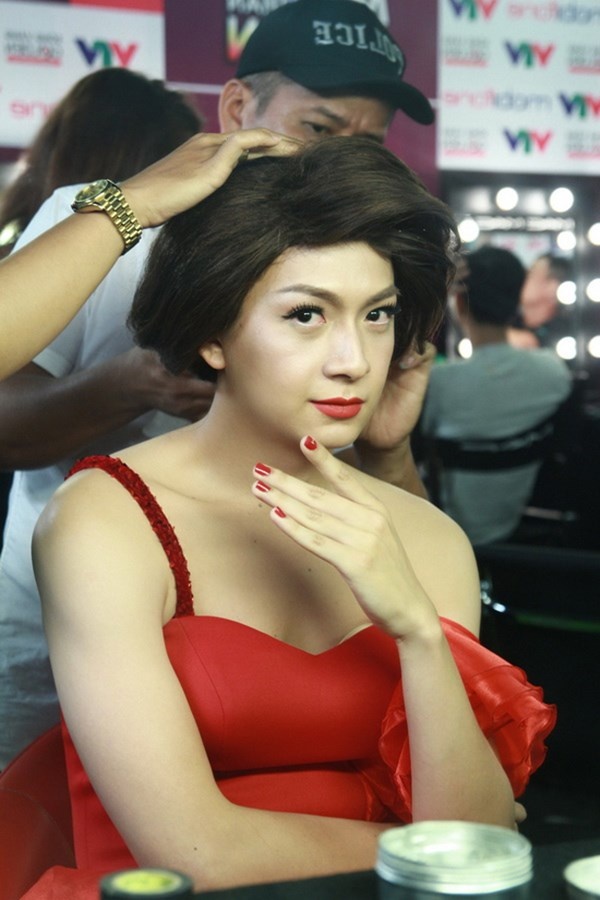 | "Mỹ nhân" Mr. Đàm ra sức quyến rũ "trai đẹp" Kim Thư sau hậu trường. |