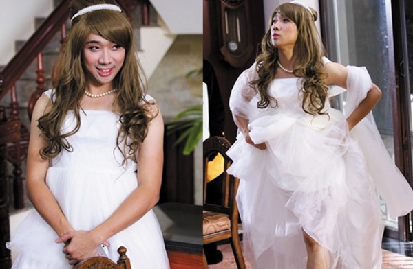 Anh từng hóa thân thành nàng tiểu thư mặc váy cưới lộng lẫy.