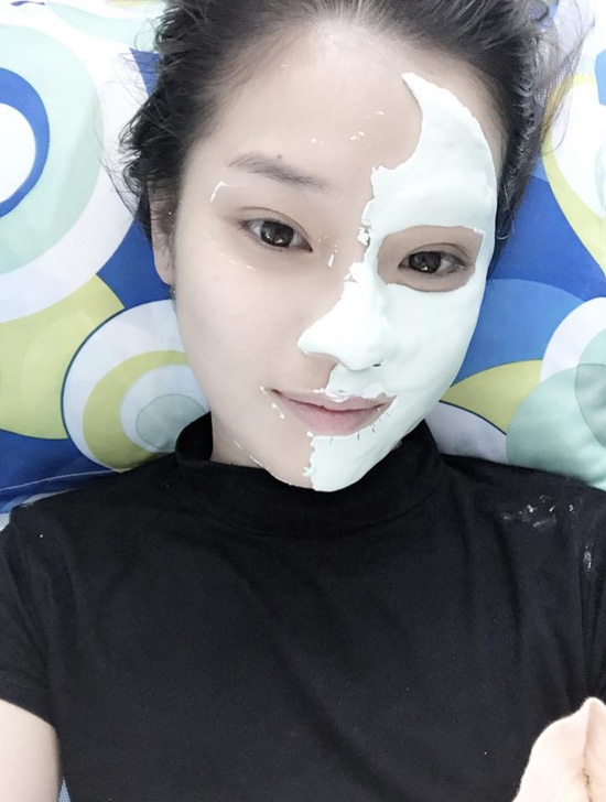 | Hình ảnh lạ lẫm của Trà Ngọc Hằng khi tranh thủ đắp mặt nạ tại nhà. |